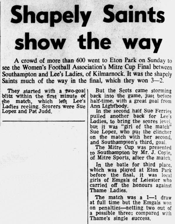 1 Sue BUCKETT 2 Karen BUCHANAN 3 Pauline DICKIE 4 Jill OSMAN 5 Jill LONG 6 Maureen CASE 7 Lynda HALE 8 Lesley LLOYD (c) 9 Pat JUDD 10 Sue LOPEZ 11 Pat DAVIES -- 12 Sue STUBBS 13 Shirley O'CALLAGHAN 1 Gerry CHALMERS 2 Betty BROGAN 3 Mary-Jane LINDSAY 4 Linda KIDD 5 Jean HUNTER 6 Sandra WALKER 7 Rose REILLY (c) 8 Jan LIGHTBODY 9 Susie FERRIES 10 Sophia McDONALD 11 Mary WHITE -- 12 Margaret McCUNNIS 13 Isobel HOWIE |